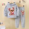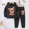 Комплект из двух толстовок и брюк для девочек на осень и зиму: милые принты с собаками, подкладка из теплого флиса, спортивные штаны (спортивный костюм).