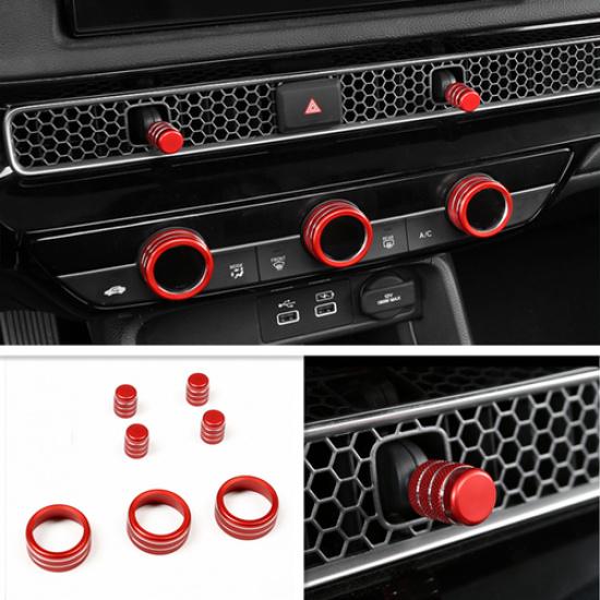 Car Dashboard Console Knob Red Trim Cover 7pcs For Honda Civic