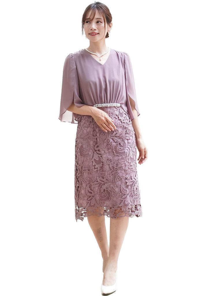 [Универсальное платье, которое придаст вам изысканный вид от 20 до 50 лет] Стиль докинга с элегантным платьем длиной до колена или миди. V-образный вырез создает яркий и четкий вид вокруг лица. Популярные объемные рукава выполнены из шифона, слегка прозрачного, модного просвечивающего типа.. Тюльпанообразный вырез — это продуманный дизайн, обеспечивающий свободу движений.. Отделка бисером на слегка завышенной талии привлекает внимание и подчеркивает фигуру.. Сборка на талии создает свободный силуэт. Юбка изготовлена из элегантного кружева, подходящего даже для самых гламурных случаев. Складки сзади создают динамичный, трехмерный дизайн. Это стильное и высококлассное платье идеально подходит для тех, кто хочет выглядеть изысканно, но не настроен на унылый образ.