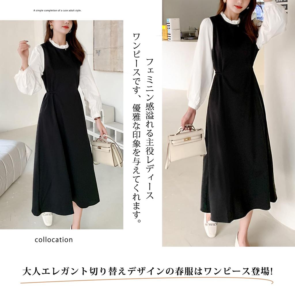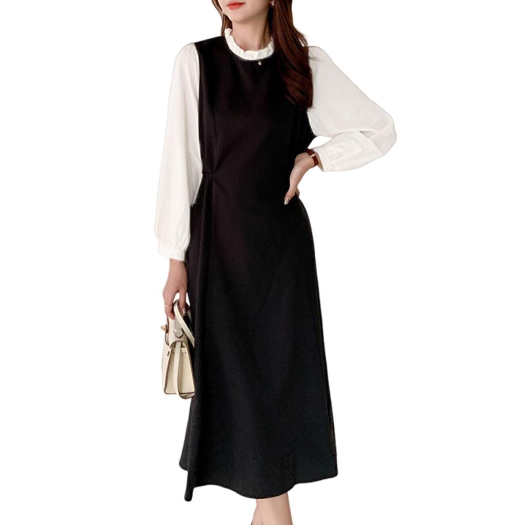 Autumn Split Long Docking Retro Loose Layered Maxi Perfect for and Autumn [WoauNuiHll] Women's Dress, Sleeves, Dress, Figure-Flattering, Slimming,