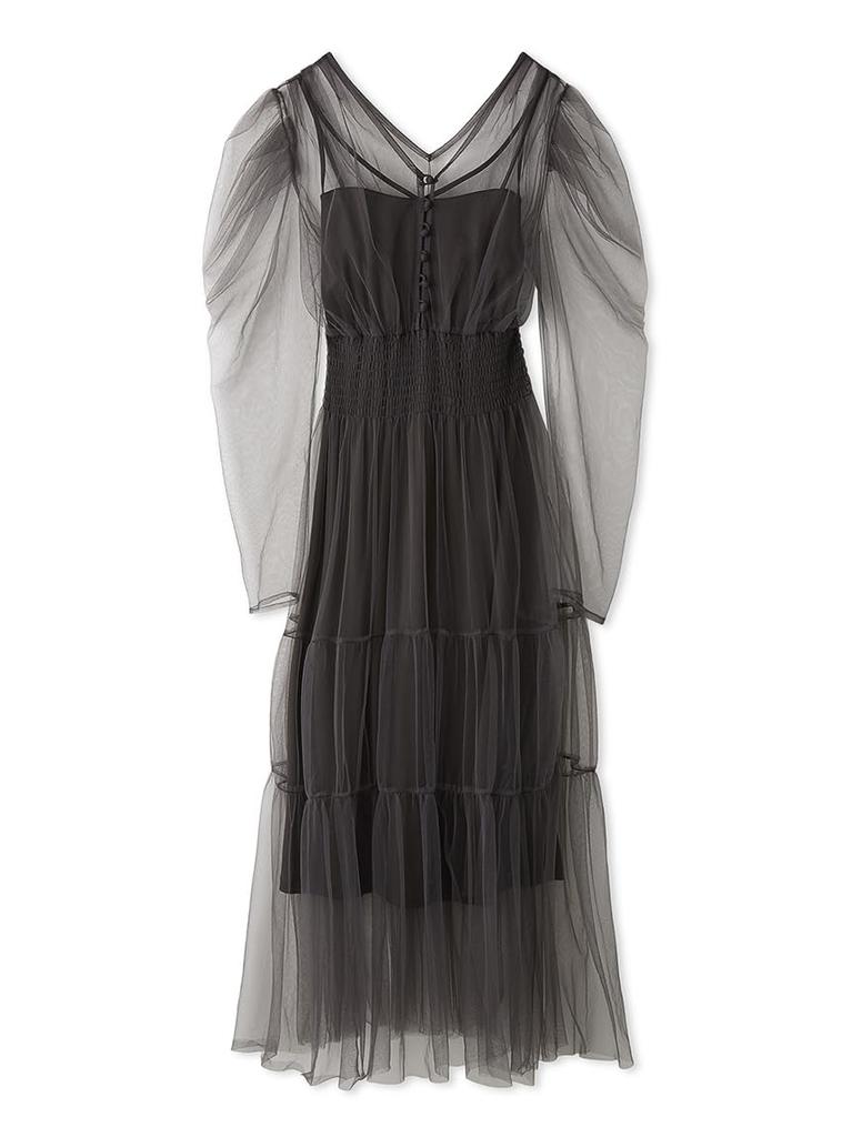 Многоярусное тюлевое платье SWFO251011CGRY0 с V-образным вырезом