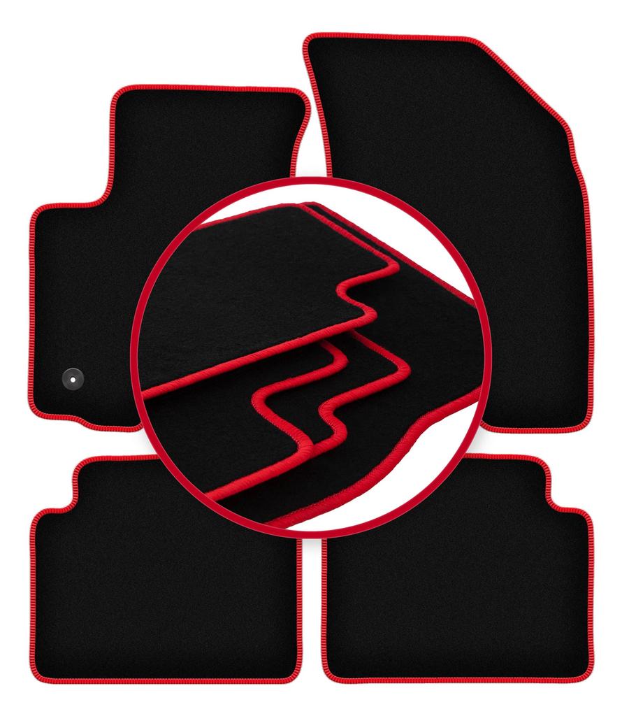 Velour floor mats with red edge for: Chevrolet Aveo I T200 / T250 hatchback, sedan (2002-2011)