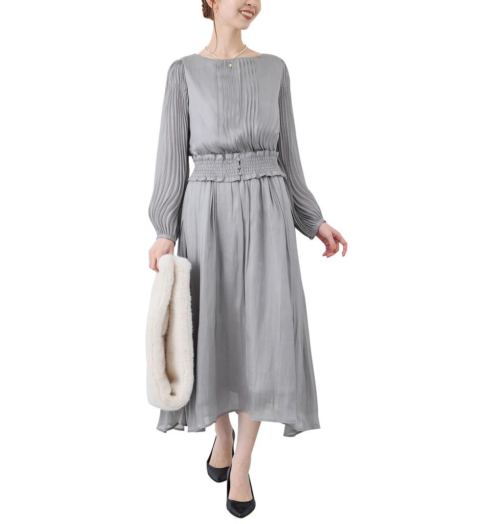 ROPE PICNIC Mon Shiny Pleated Blue Size Perfect for Weddings E'toile Dress, (45), 36,