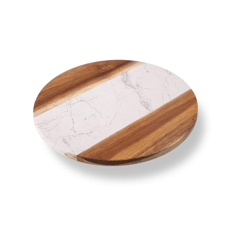 Круглая мраморная и акациевая деревянная подставка для торта и сервировочная доска