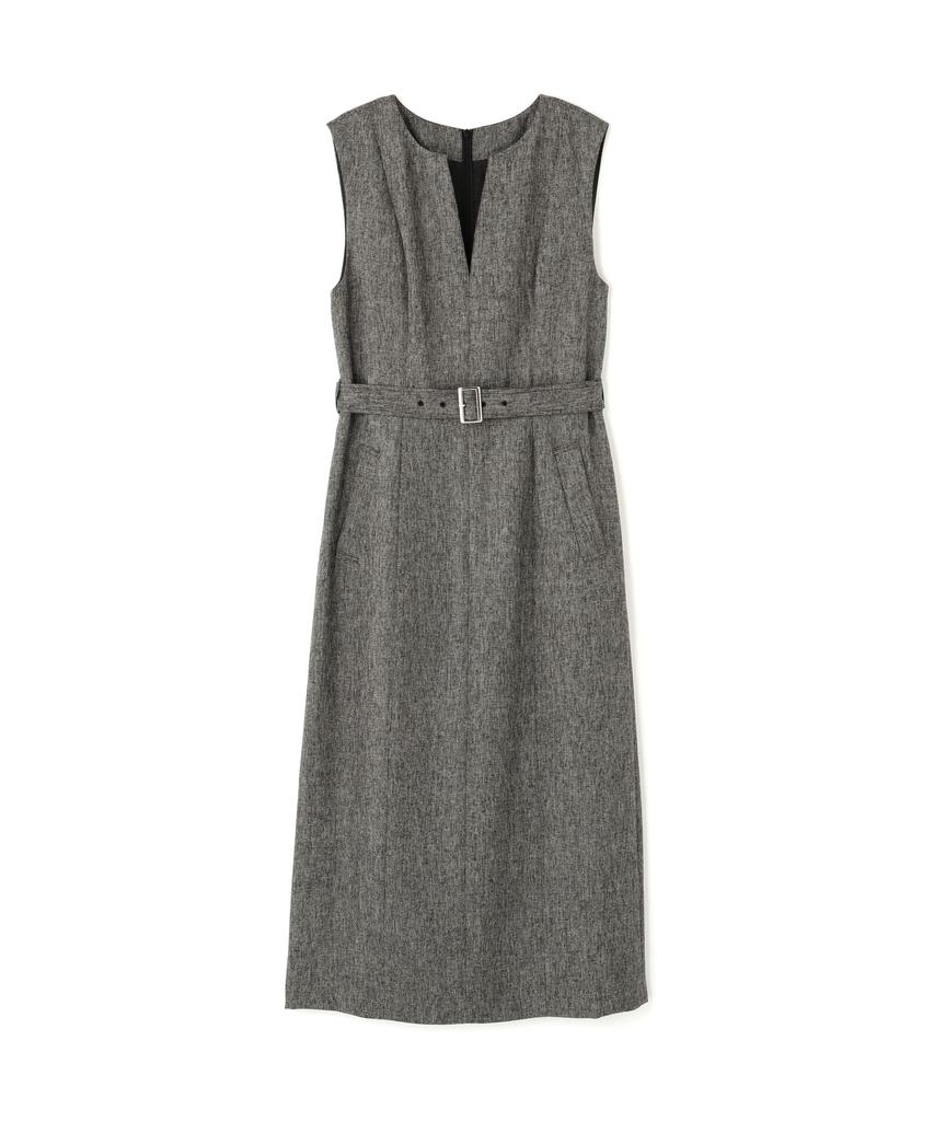 Beauty Keyhole Neck Belted Jumper Skirt [Natural Basic] [Black/M]