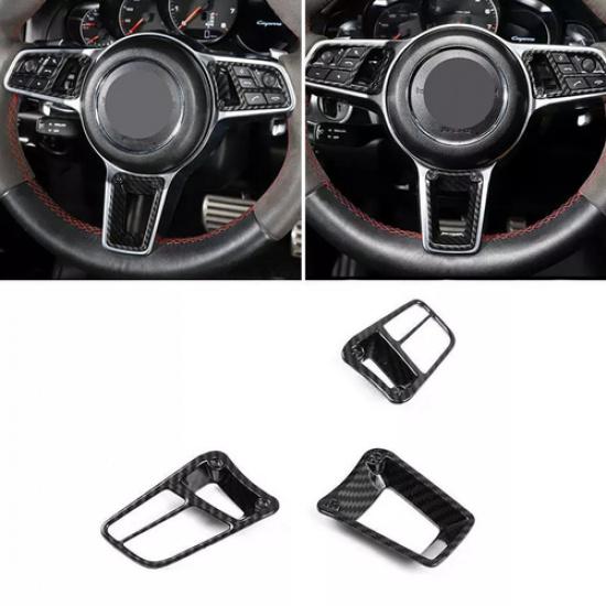 3x Carbon Fiber ABS Steering Wheel Panel Button Trim For Porsche Macan 2014-
