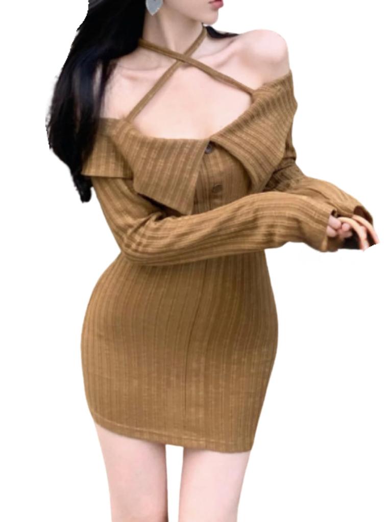 [Recommended points] Thick ribbed material for a high-end look and stretch ◎ Off-the-shoulder design that flatters the décolleté beautifully! Faux buttons accentuate the elegant silhouette ◎ A dress perfect for dates that looks great on its own ♪ Stretchy for ease of movement and excellent comfort ◎ Knit material with just the right thickness, perfect for autumn and winter [Styling suggestions] ・Pair with long boots for a trendy Korean look ・Pair with short boots and a small bag for a feminine look ・Put on a jacket or coat for autumn and winter outings ◎