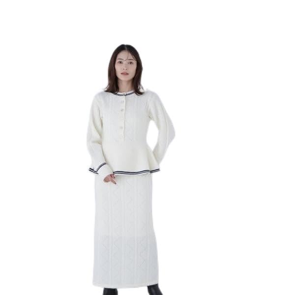 Natural Beauty Basics Peplum Cable Knit Set (White/M)