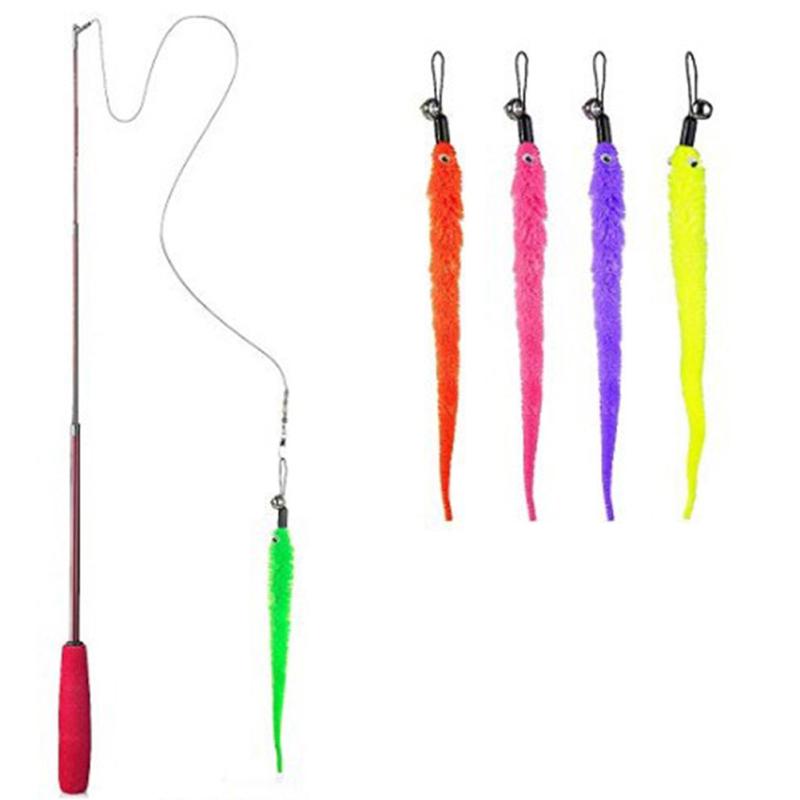 Интерактивная игрушка для кошек с выдвижным стержнем и набором перьевых червей с 5 стержнями