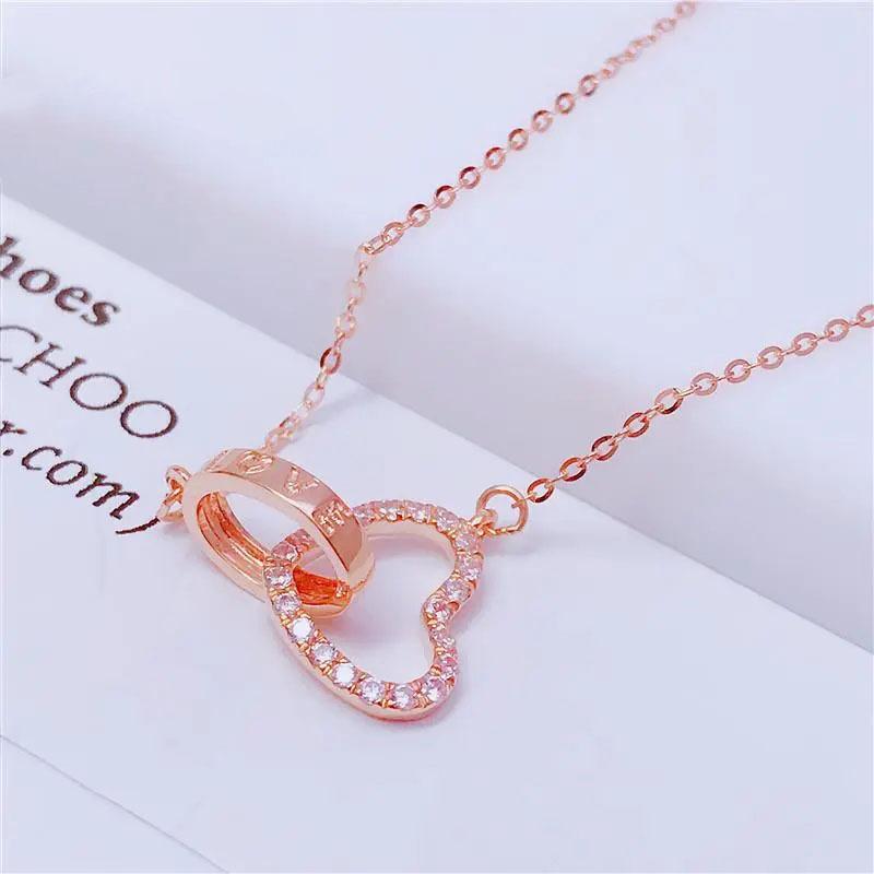 Фиолетово-золотой роскошный сверкающий бриллиант двойное кольцо ожерелье любви с покрытием из розового золота золотая нишевая цепочка