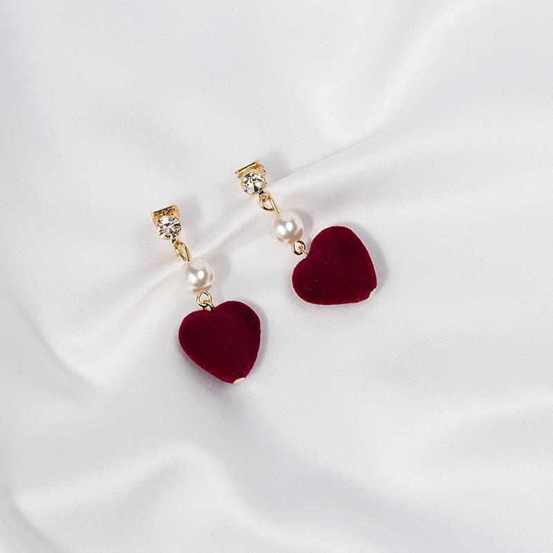 Ретро бархатные серьги-клипсы цвета бургунди с жемчугом любви, темпераментный длинный стиль без проколов ушей, геометрические клипсы с бриллиантами в форме персикового сердца — купить товар онлайн с бесплатной доставкой по всему миру!