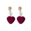 Ретро бархатные серьги-клипсы цвета бургунди с жемчугом любви, темпераментный длинный стиль без проколов ушей, геометрические клипсы с бриллиантами в форме персикового сердца
