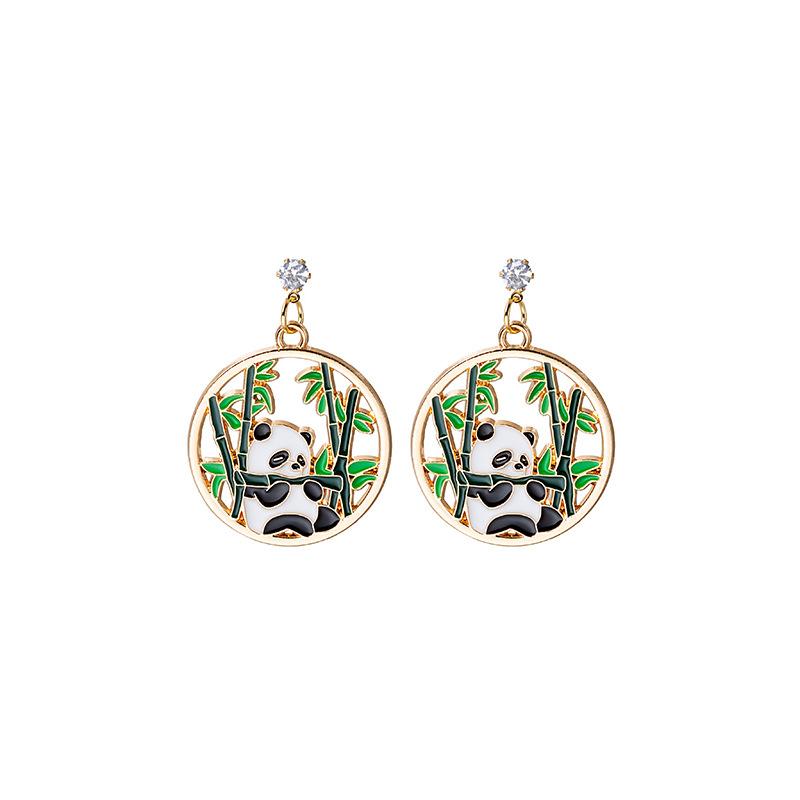 Long Tassel Oriental Idyllic Exquisite And Cute Cartoon Panda Bamboo Diamond Earrings Girl Stud Earrings
