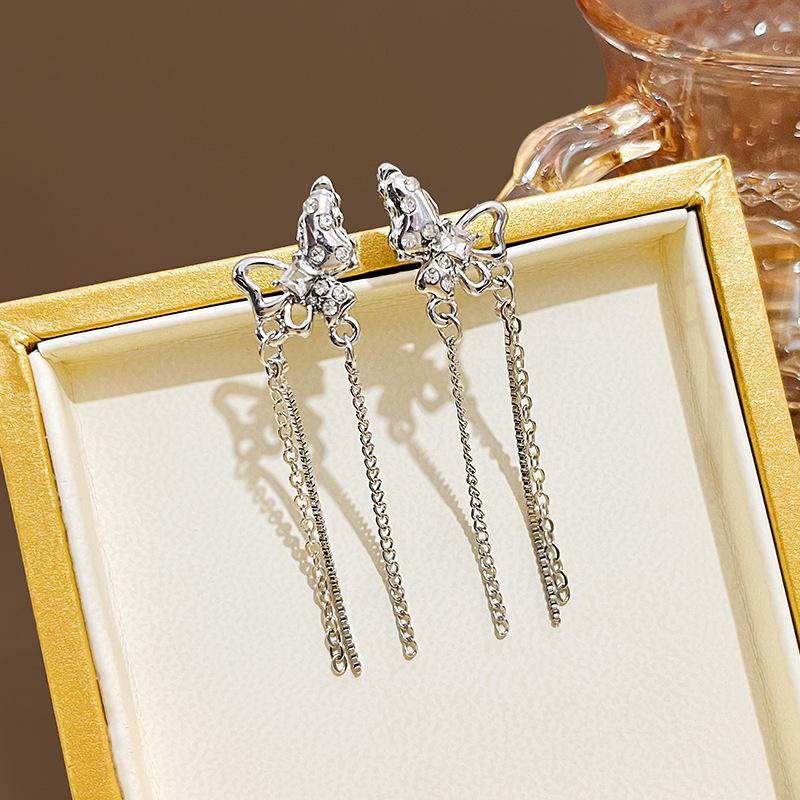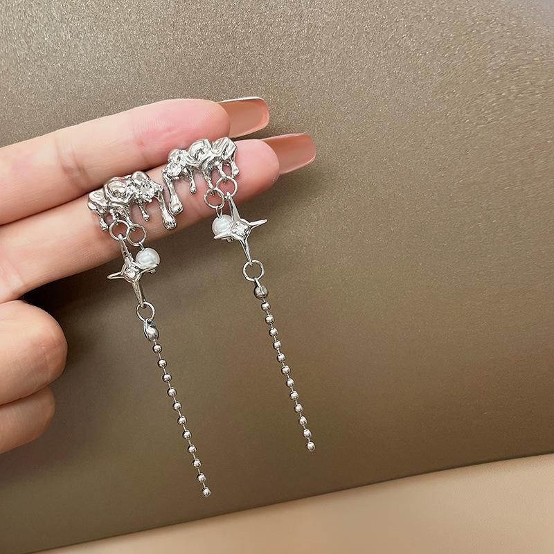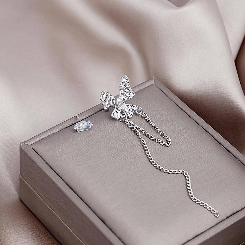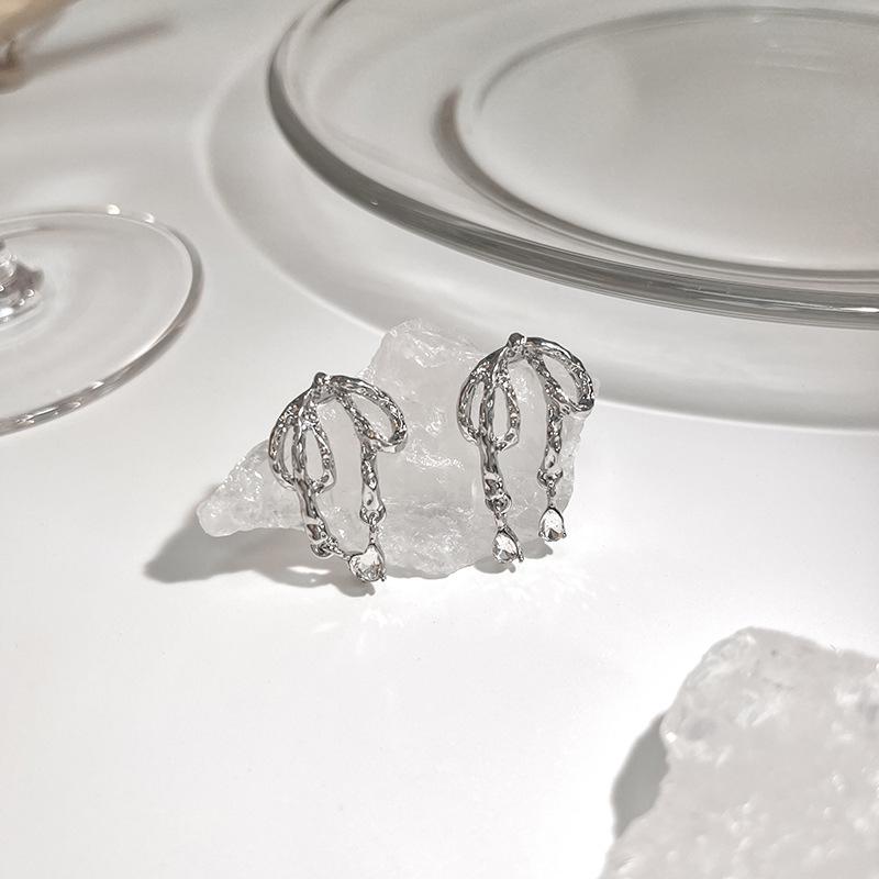 Необычные серьги-бабочки из жидкого металла с бриллиантами, Асимметричные длинные серьги-подвески в стиле холодного ветра с лавовыми каплями воды