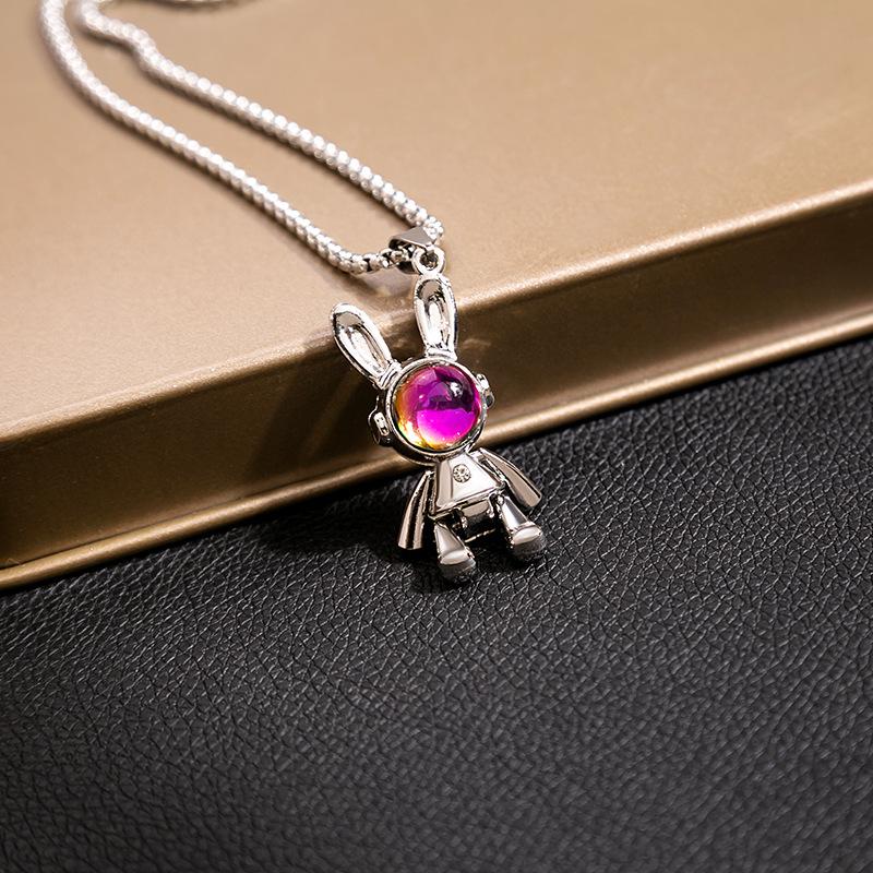 Длинное механическое ожерелье «Космический кролик», мультяшный красочный кулон в виде головы кролика с драгоценным камнем, подвижные конечности, панк-аксессуары высокого класса