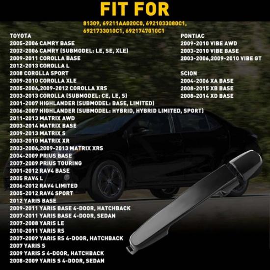 Outside Door Handle For 2003-2013 Toyota Corolla Rear Left / Right Smooth Black