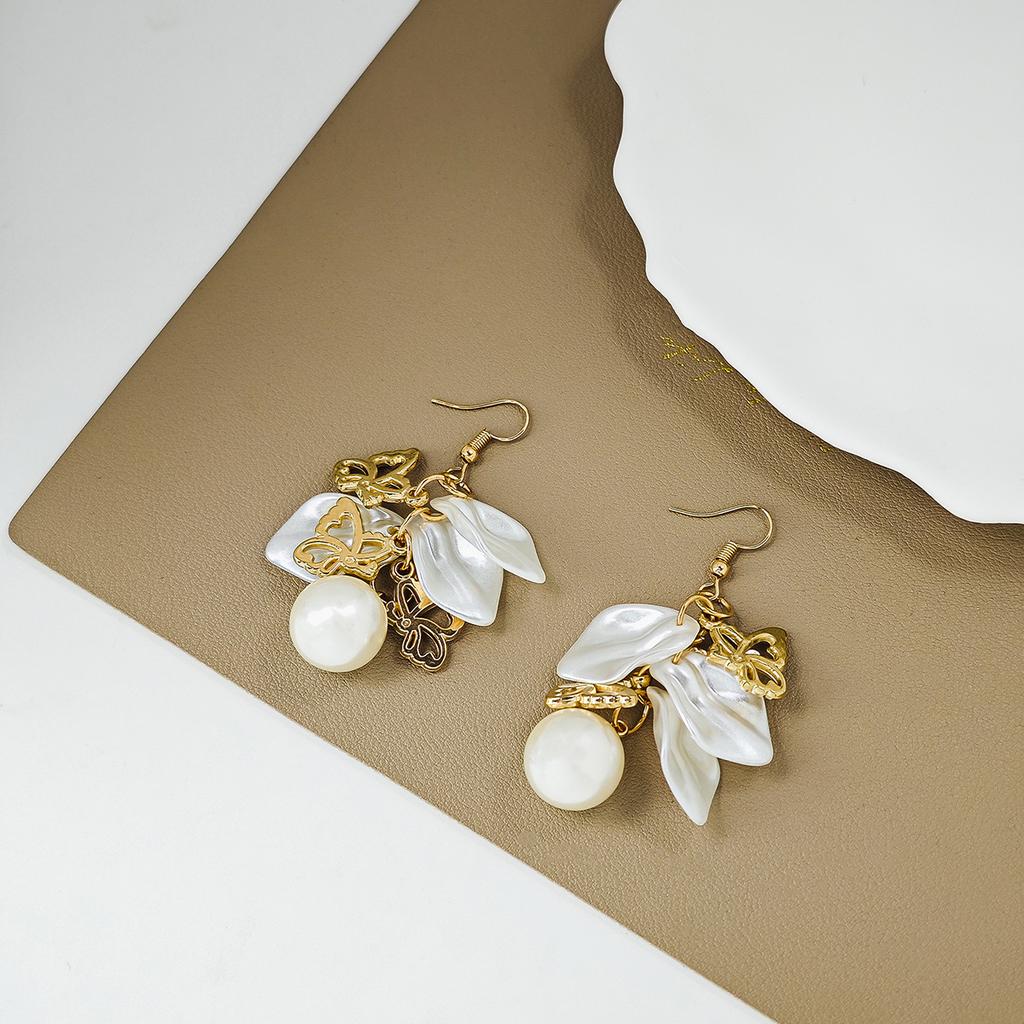 Французские ретро серьги-пусеты с белыми жемчужинами в виде лепестков, простые серьги с цветком, бабочкой и ключиком с кисточками