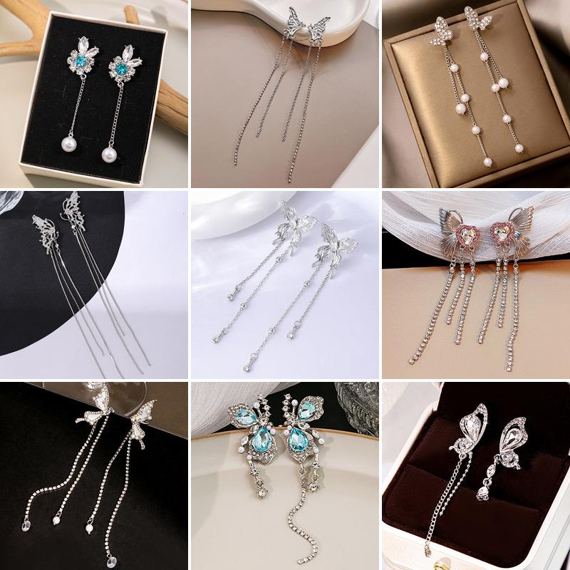 Коллекция серег с бахромой «Фея-бабочка», Металлические серьги-цепочки с бриллиантами «Ветер», Преувеличенные и тонкие серьги-пусеты