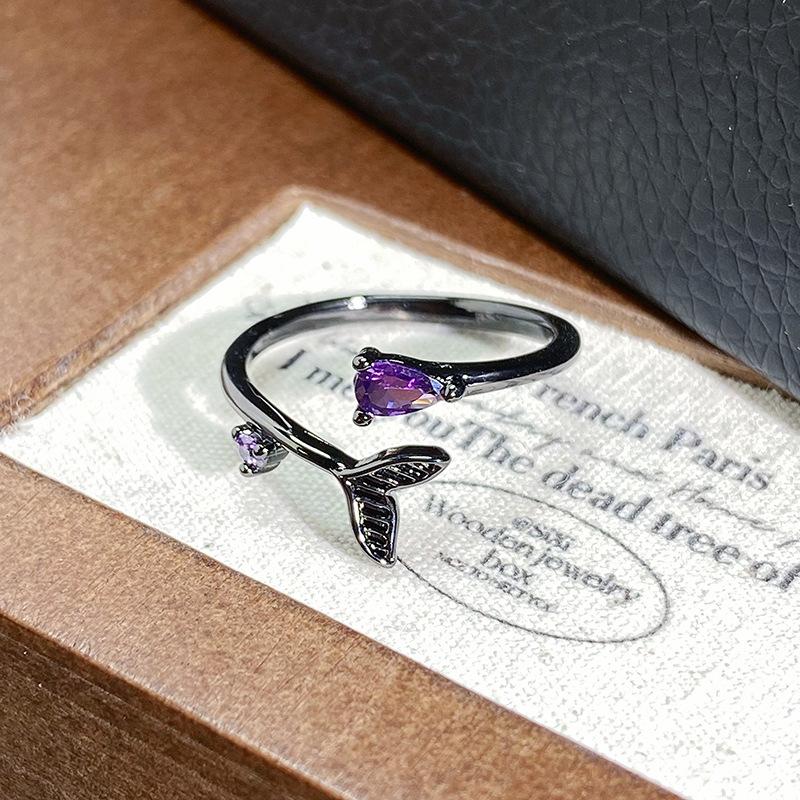 Панк Темная Личность Сладкий Крутой Луна Рыбий Хвост Полностью Алмазный Открытый Кольцо Специи Девушка Нишевое Сокровище Премиальное Ощущение Кольцо Девушка