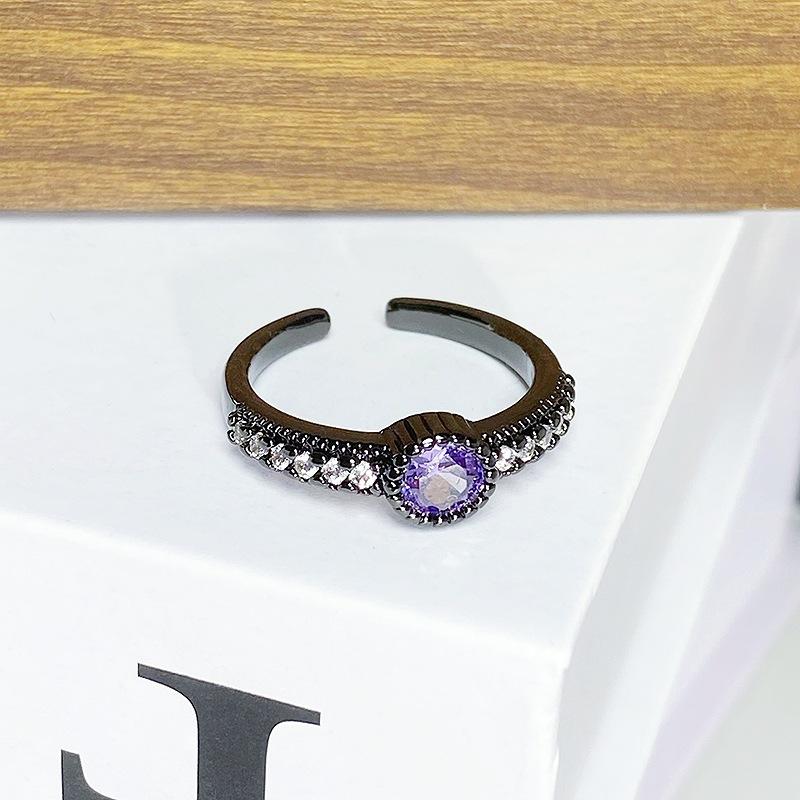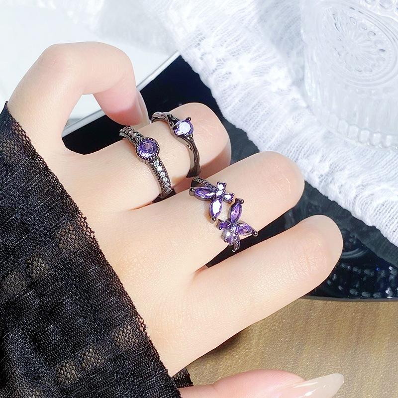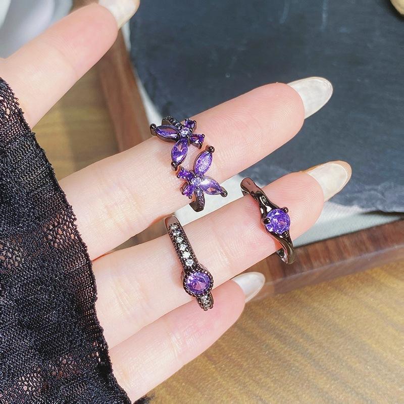 Темно-фиолетовый бриллиант циркон цветной сокровище бабочка открывающееся кольцо личность ниша панк ретро передовой смысл многослойное кольцо женщина