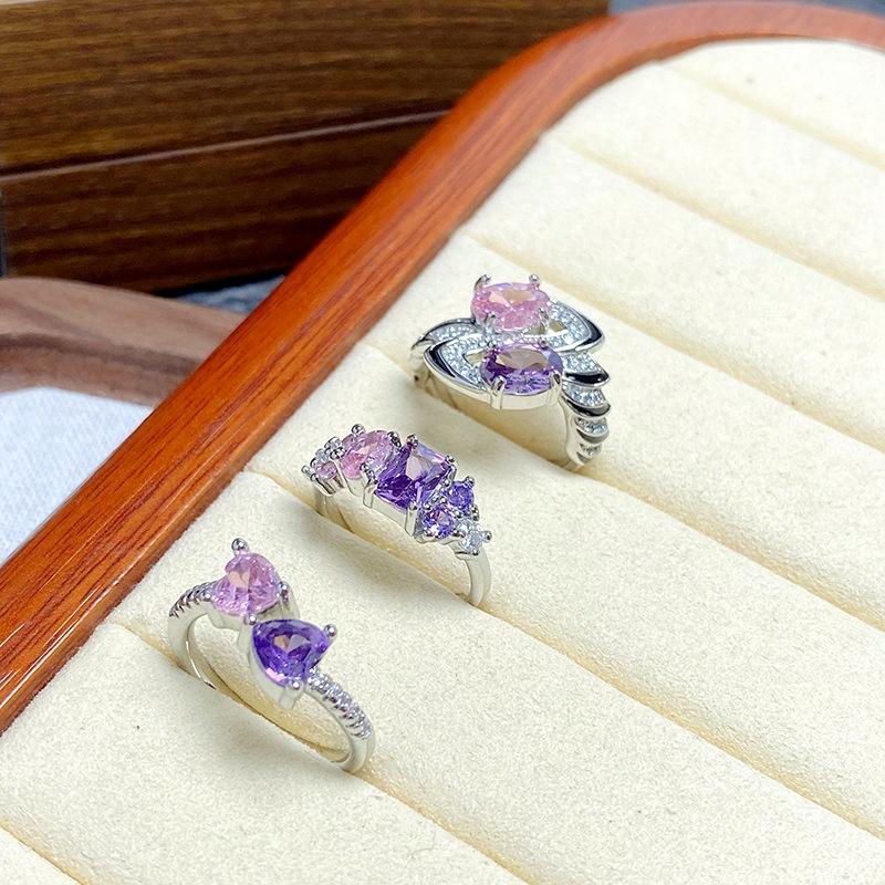 [Любовь двойного кристалла] Розово-фиолетовое кольцо с полным покрытием цирконами, нишевое, легкая роскошь, высококачественное, сладкое сокровище, кольцо для девушки