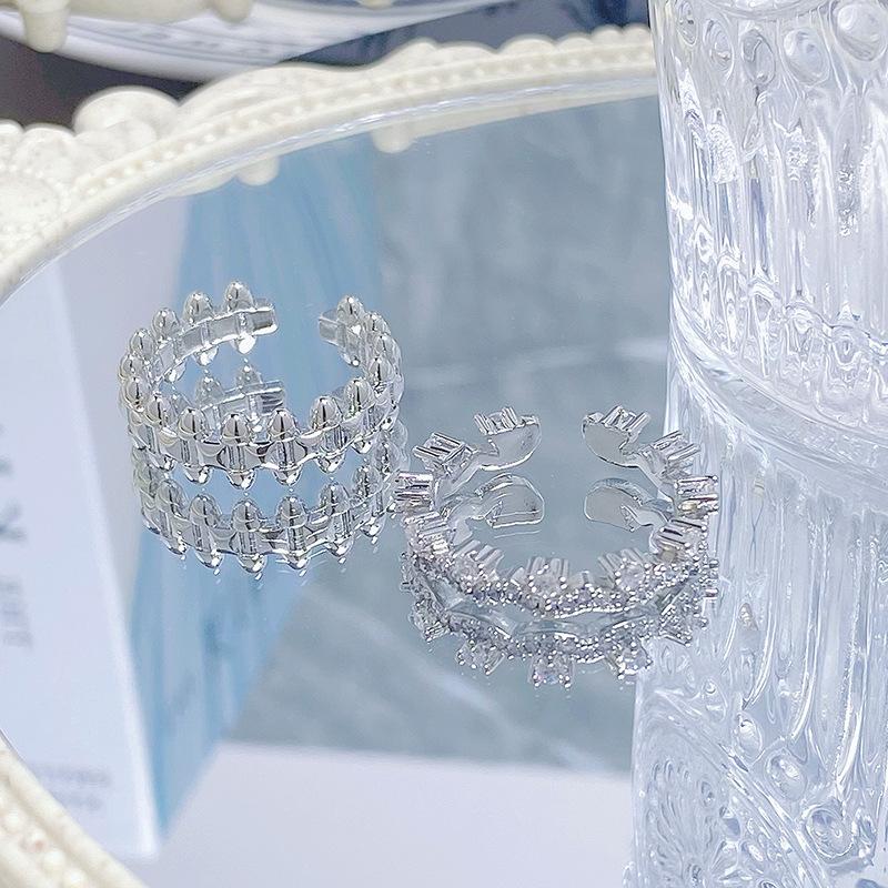 Lace Lace Diamond Zircon Light Luxury Open Ring High Sense Stacking Wearing Temperament Plain Ring Niche Design Ring Women