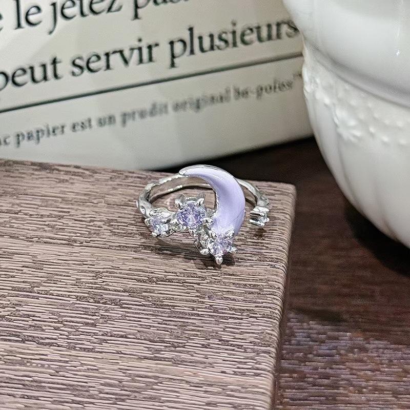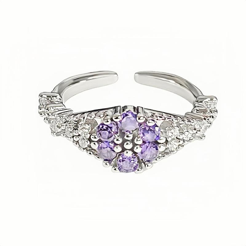 Надетое в несколько рядов милое и романтичное кольцо с открытым фиолетовым бриллиантом, простое и изысканное кольцо для женщины с холодным ветром.