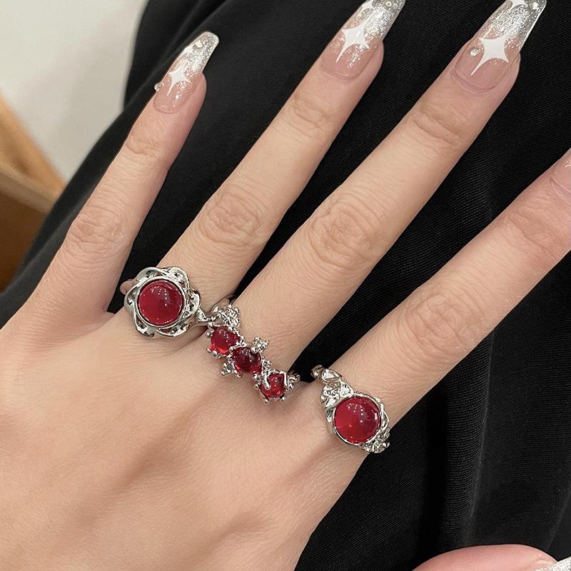 Рубиновое Премиум Чувство Наслоенный Носимый Нишевый Дизайн Чувство Открытое Кольцо Ювелирное Изделие Персонализированное Кольцо на Указательный Палец