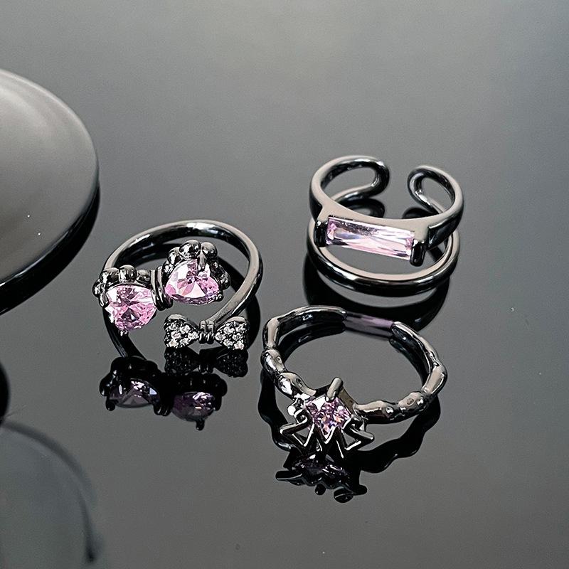 Sweet And Cool Temperament Bow, Pink Diamond Zir*****Pen Ring, Women'S Cold Wind Niche Design High-End Ring