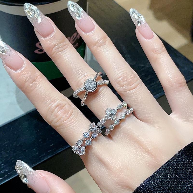 Light Luxury Four-Leaf Clover Zir*****Pen Ring Niche Design High Sense Fashion Exquisite Stacked Ring Woman
