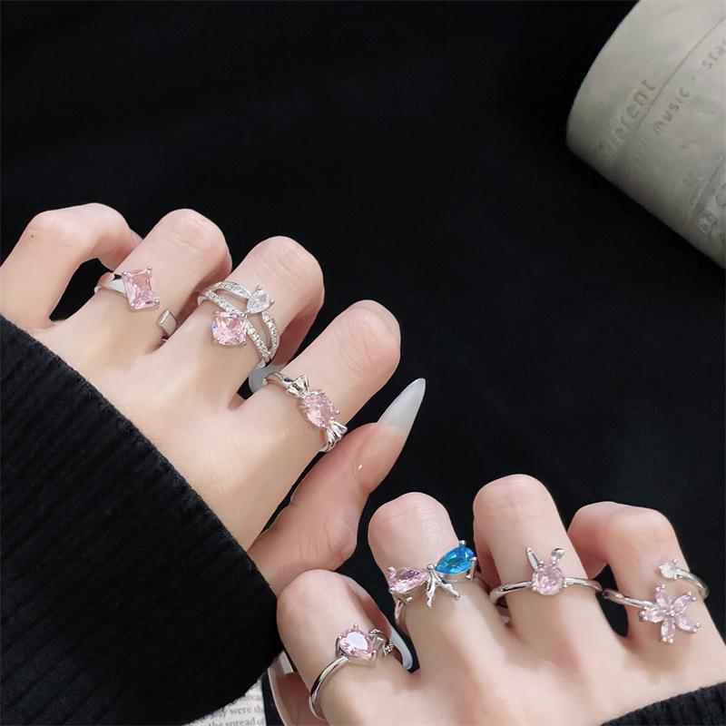 Bow Pink Zircon Series Open Ring Niche Love Cold Wind Advanced Sense Personality Ring Woman — купить товар онлайн с бесплатной доставкой до всему миру!