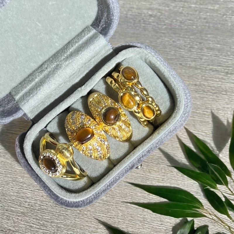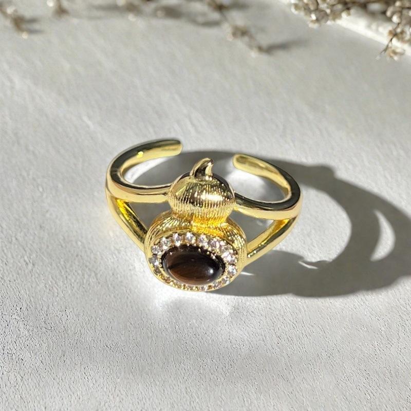 Имитация циркона Открытое кольцо Тигровый глаз Нишевый дизайн Высокий уровень Личность Складывающееся Французское Ретро Кольцо