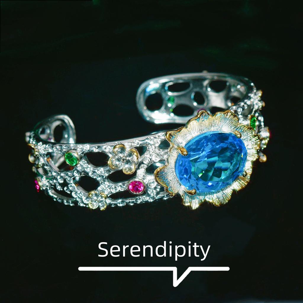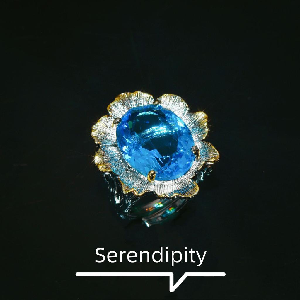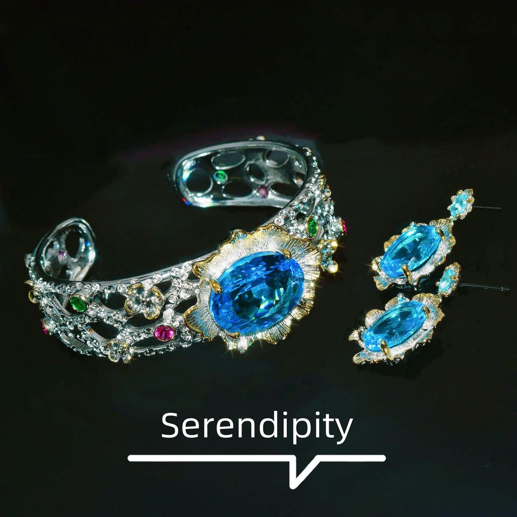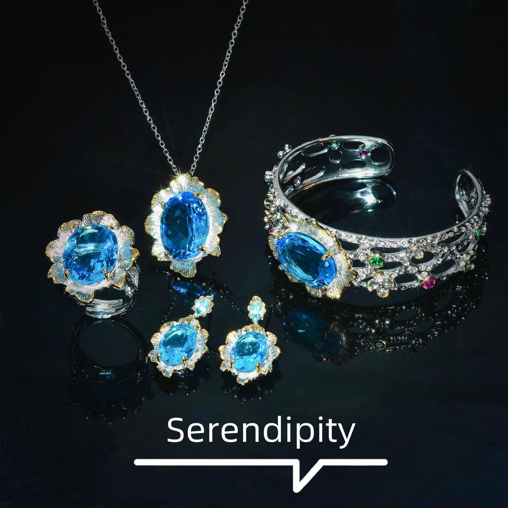 Итальянская ремесленная ретро кружевная синяя бриллиантовая ожерелье, кольцо с имитацией аквамарина, серьги-пусеты, браслет, кулон для женщин