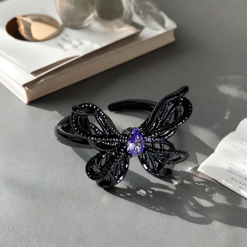 Панк Темный Стиль Личность Фиолетовый Алмаз Инкрустированный Циркон Бабочка Открытое Кольцо Наборное С Нишевым Дизайном Высококачественное Кольцо Женщина