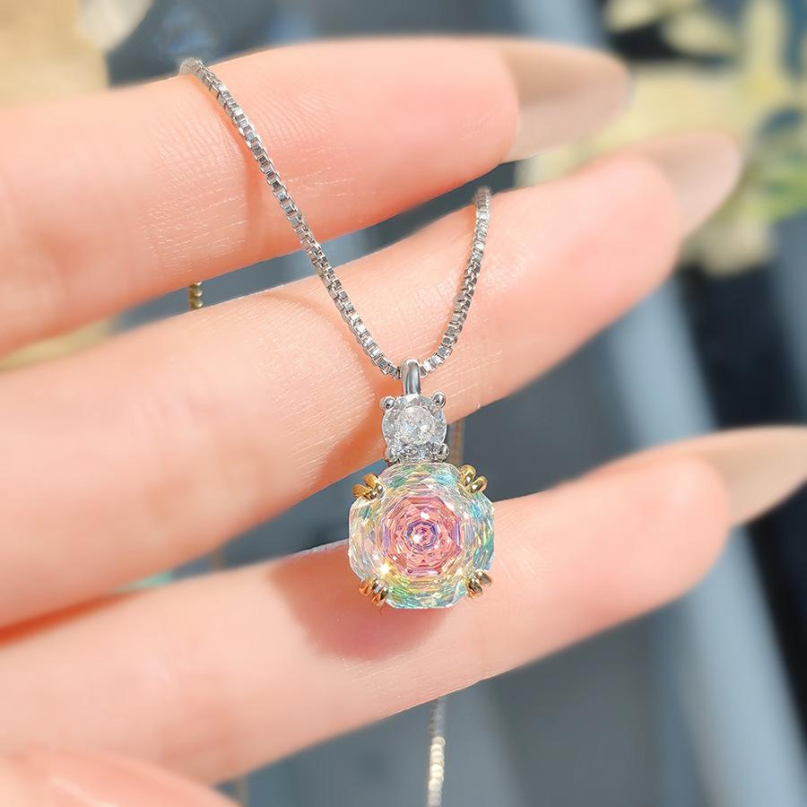 Мода Легкая Роскошь Звездчатый Анис Роза Огранка Подвеска Ожерелье Красочное Розовое Кольцо с Бриллиантом Китайский Красный Серьги-пусеты Красочный Набор Сокровищ Женщины