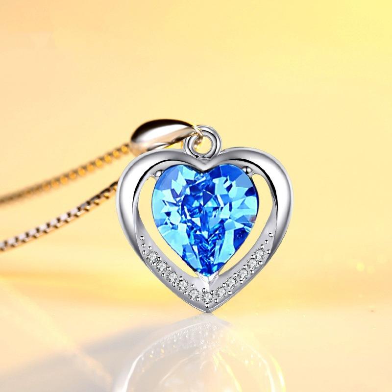 Синий Крупный Каратный Циркон Форма Сердца Розовый Кристалл Подвеска Вечное Сердце Ожерелье Ювелирные Аксессуары Женские