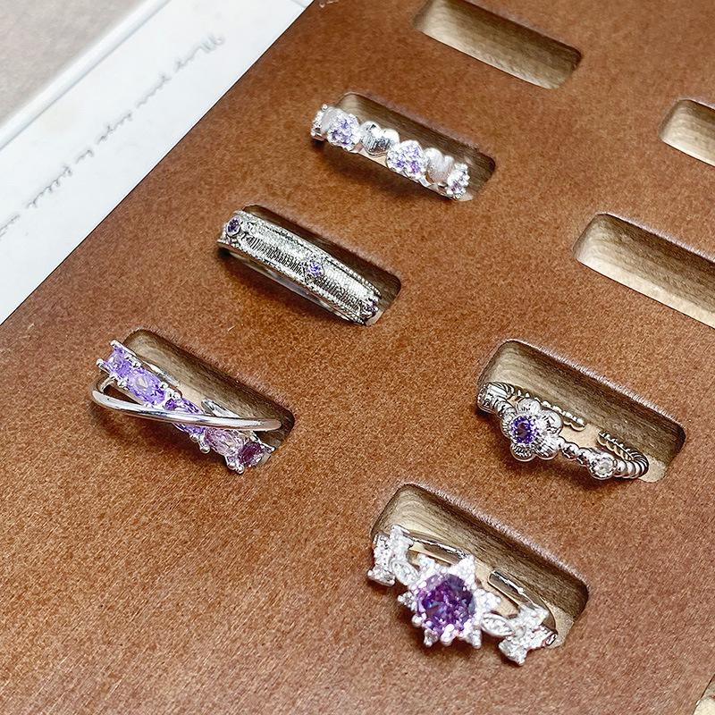 Девять фиолетовых разделений Огонь Фиолетовый Циркон Цвет Открытие сокровищ Кольцо Нишевый дизайн Наслоение Ношение Легкая роскошь Продвинутое чувство Кольцо личности Женское