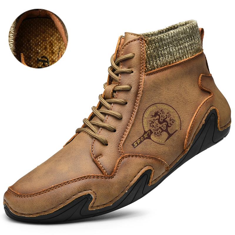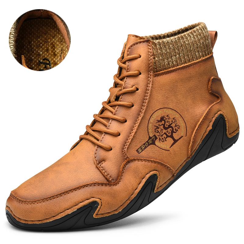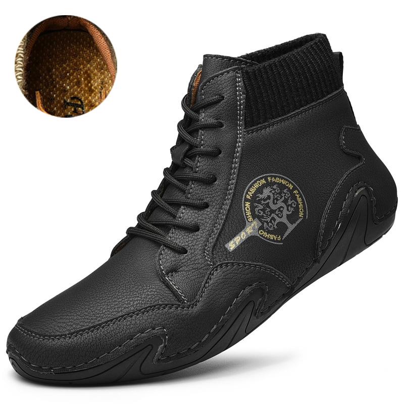 Непромокаемые кожаные мужские ботинки, зимние ботинки на меху, очень теплые зимние ботинки, мужская зимняя повседневная обувь, кроссовки, высокие ботильоны в западном стиле