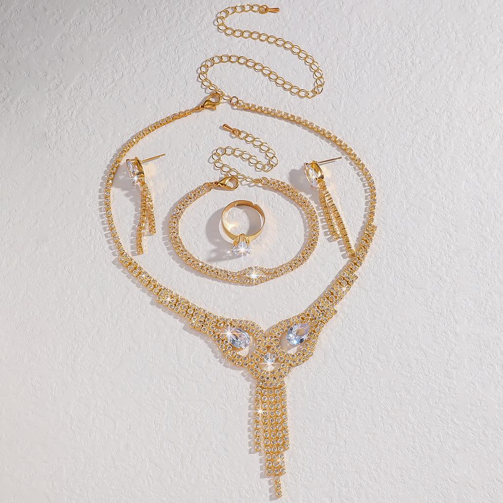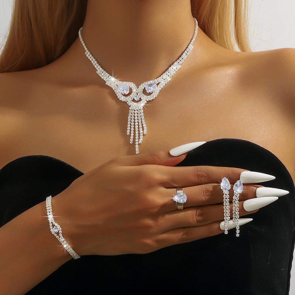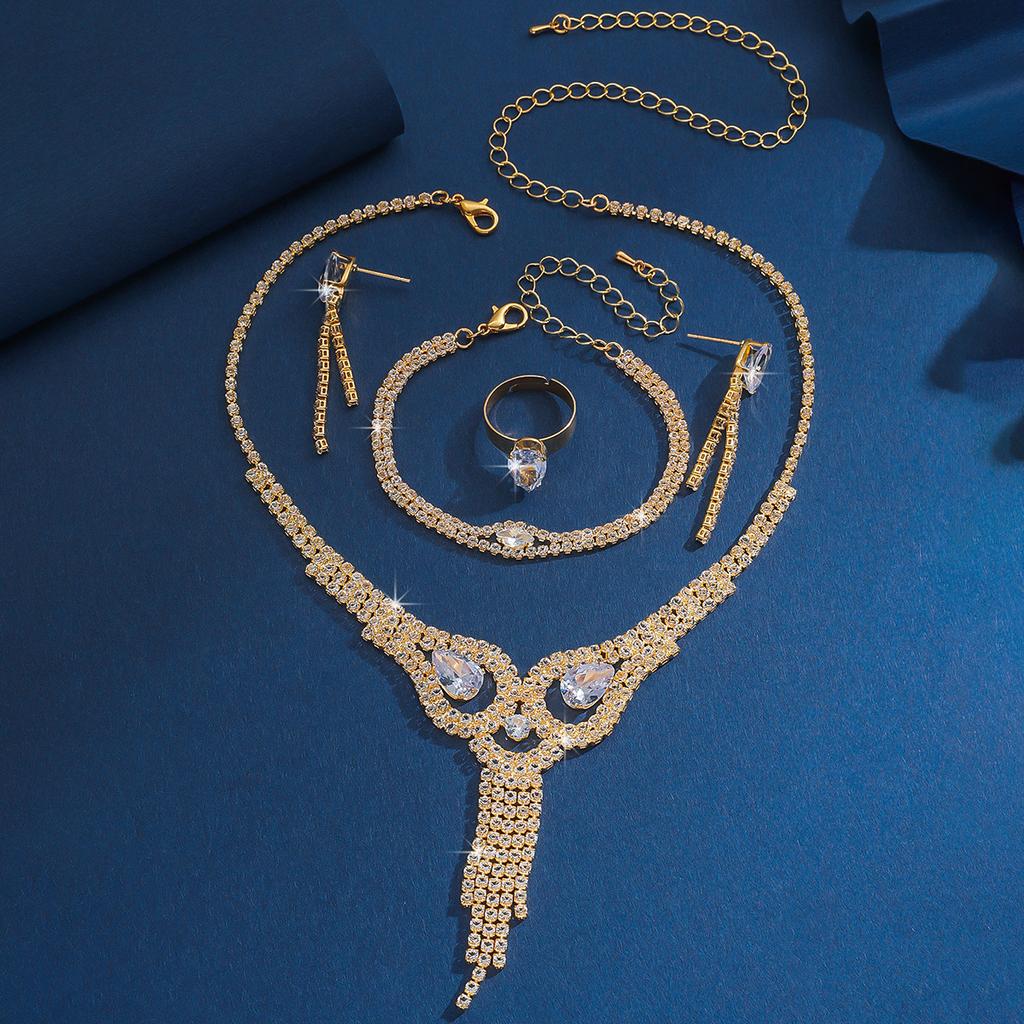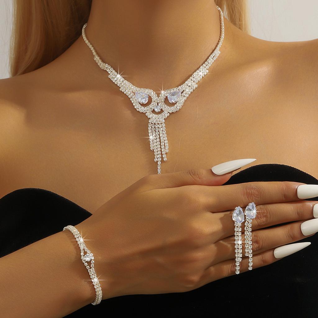Популярные аксессуары Ожерелье с бриллиантами, Серьги, Аксессуары для свадебного платья, Набор из четырех предметов с цирконами и бриллиантами