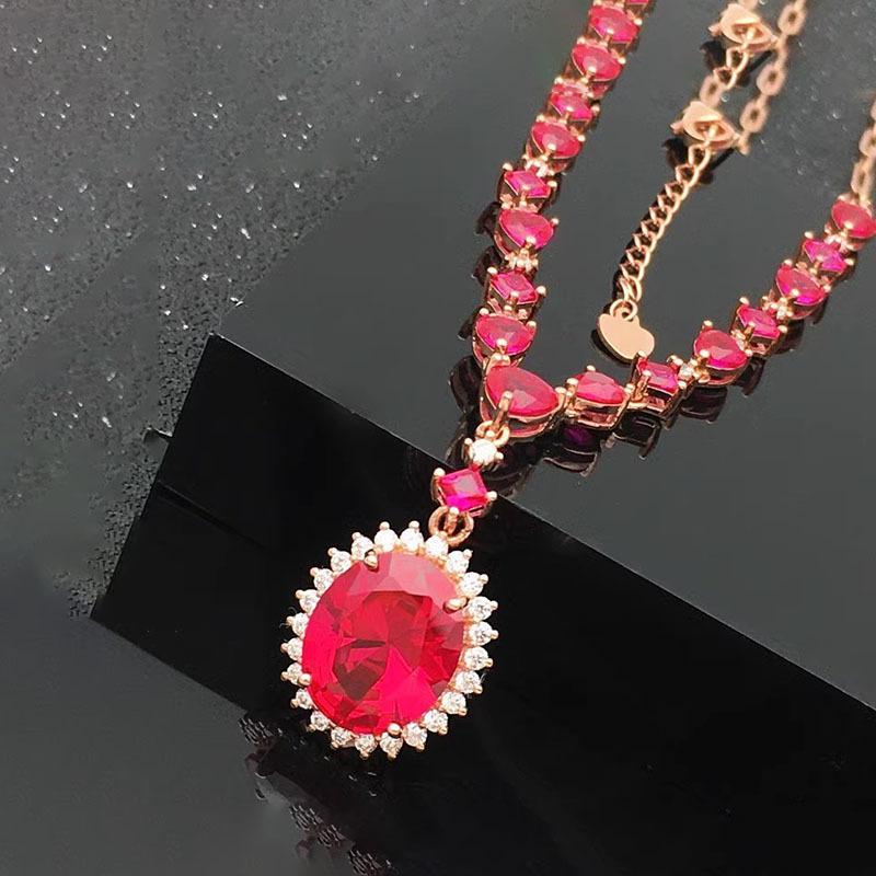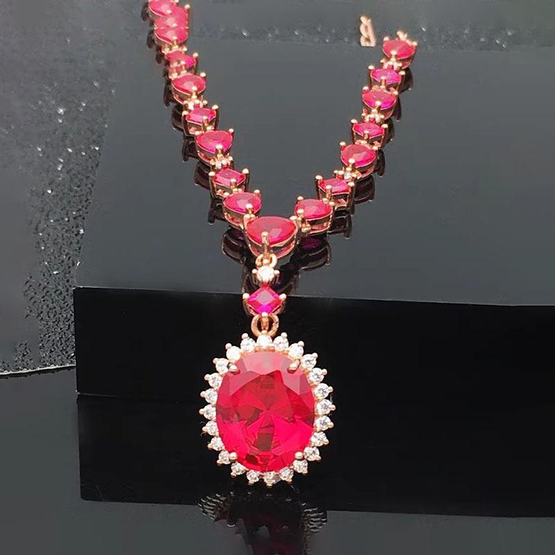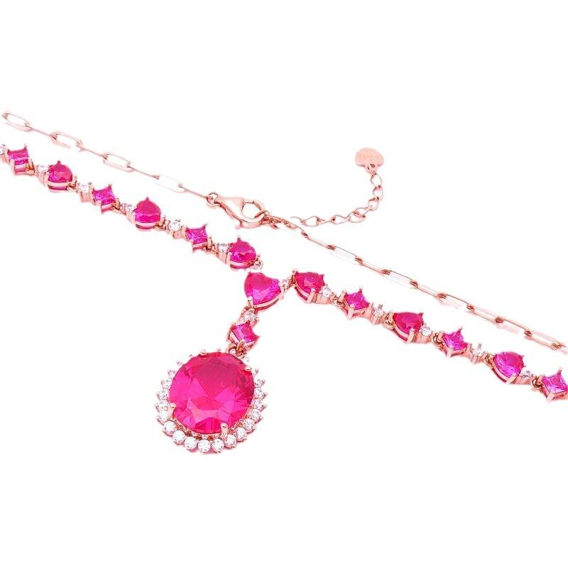 Роскошное колье из фиолетового золота с рубинами и бахромой, цепочка на ключицу с персиковым сердечком и покрытием из розового золота.