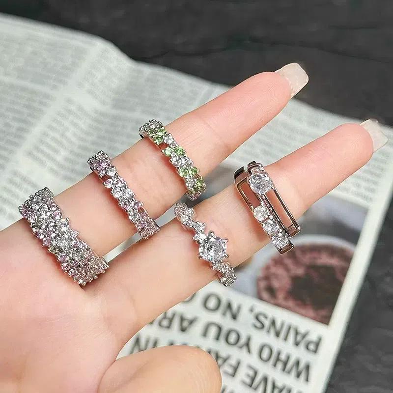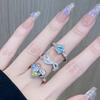 [Сломанный бриллиант Галактика] Цветной микро-инкрустированный циркон Высококлассное открытое кольцо Ряд бриллиантов Нишевый цветной сокровище Изысканное кольцо Женщина