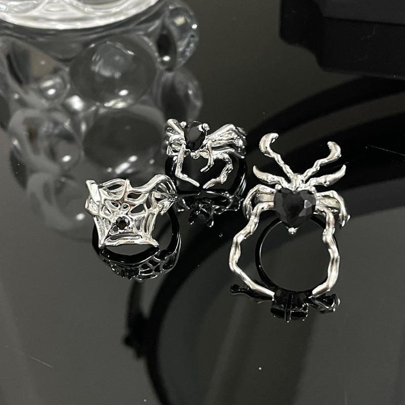 Niche Design Sense Light Luxury Cold Wind Spider Combination Black Gemstone Ring Women'S Personality Fashion Open Ring