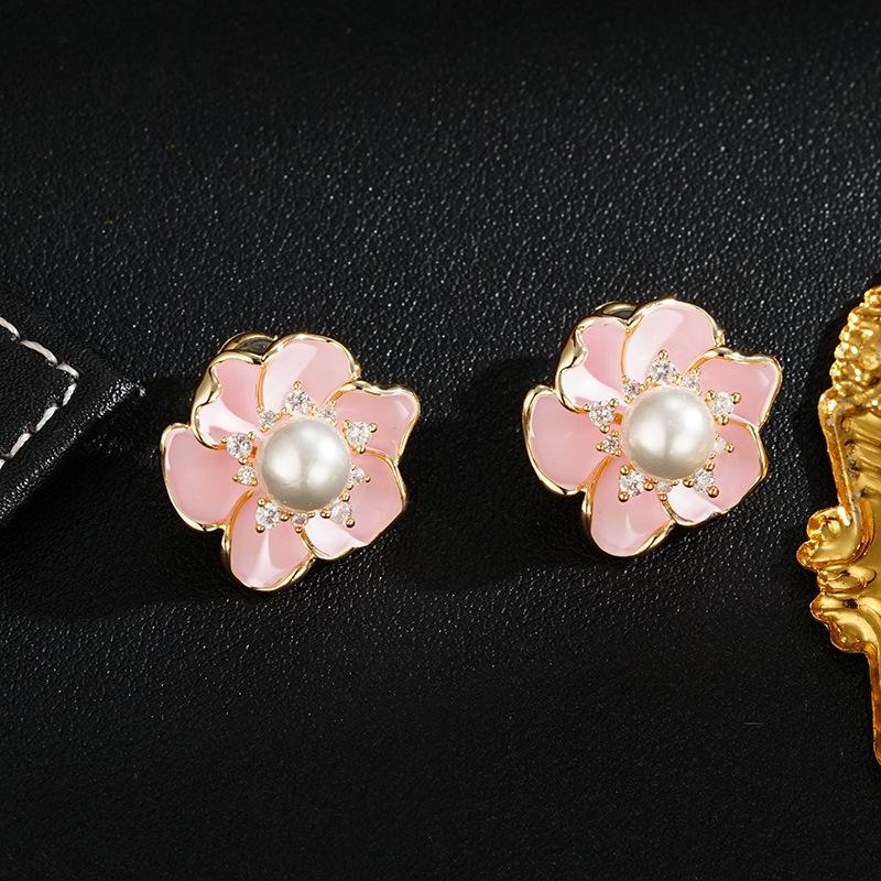 Premium Sense Sweet And Elegant Temperament Pink Flower Stud Earrings Unique Design Sense Light Luxury Temperament Gentle Earrings Wholesale — купить товар онлайн с бесплатной доставкой по всему миру!
