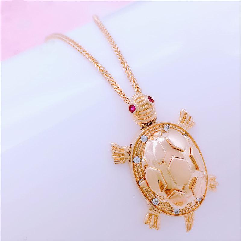 Pure Purple Gold Necklace, Rose Gold Plated, Fashionable And Unique Turtle Openable Pendant.