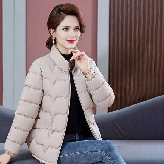 Женская хлопковая куртка с воротником-стойкой и длинным рукавом, однотонная застежка-молния, осень-зима