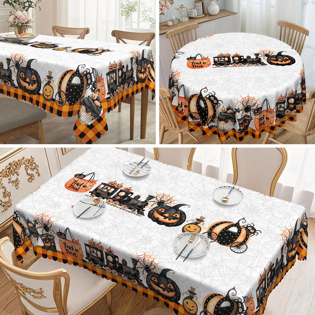Halloween Tablecloth With Cat, Pumpkin And Bat Patterns, Polyester Rectangular Tablecloth, Indoor And Outdoor Party Decorations