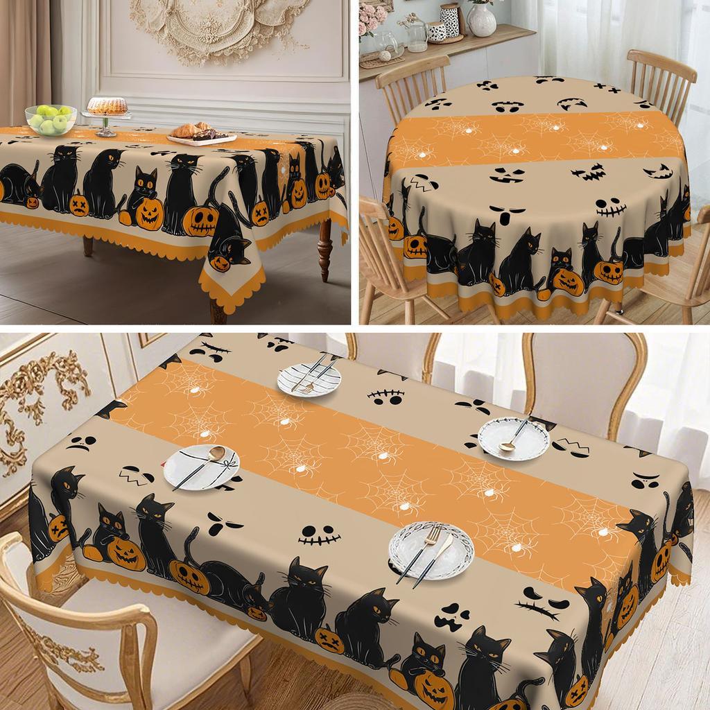 1 Piece, Happy Halloween Tablecloth, Retro Black Cat Pumpkin Butterfly Bat, Halloween And Day Of The Dead Decorations