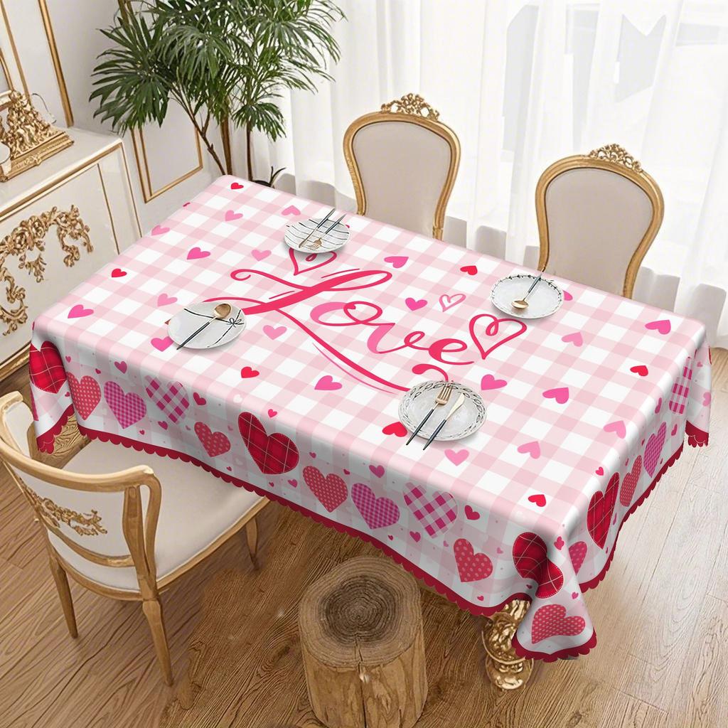 С Днем Святого Валентина, Скатерть на тему любви, Красная любовь, Дизайн в розовую клетку, Декоративная ткань для обеденного стола.