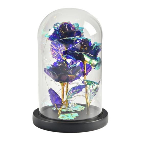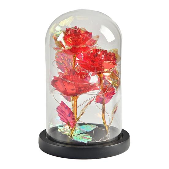 Элегантный стеклянный купол: Это изысканное украшение представляет собой тщательно изготовленную розу из золотой фольги, сохраненную под кристально чистым колпаком из высокоборосиликатного стекла.. Стеклянный купол обладает исключительной прозрачностью и прочностью, обеспечивая розе яркость и защиту от пыли и повреждений, а также добавляя изысканности любому пространству.