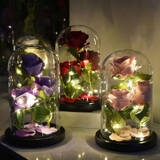 Долговечная красота: Изготовлено из прочных материалов, которые сохраняют элегантность розы на неопределенный срок без увядания или выцветания.. Сочетание высококачественного стекла и дерева обеспечивает долговечность, требуя лишь периодической бережной чистки для поддержания первозданного вида.. Это делает его беспроблемным декоративным сувениром, который продолжает впечатлять с течением времени.